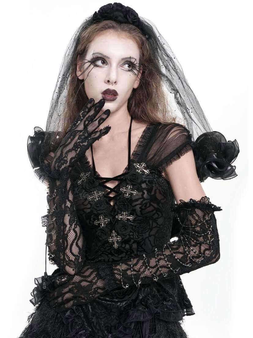 Designed to pair beautifully with dresses, formal looks, and layered alternative fashion, Widow's Veil Lace Gloves add coverage and visual detail without overpowering the rest of your outfit. They are an easy finishing piece for dark romantic, Victorian-inspired, and evening looks.